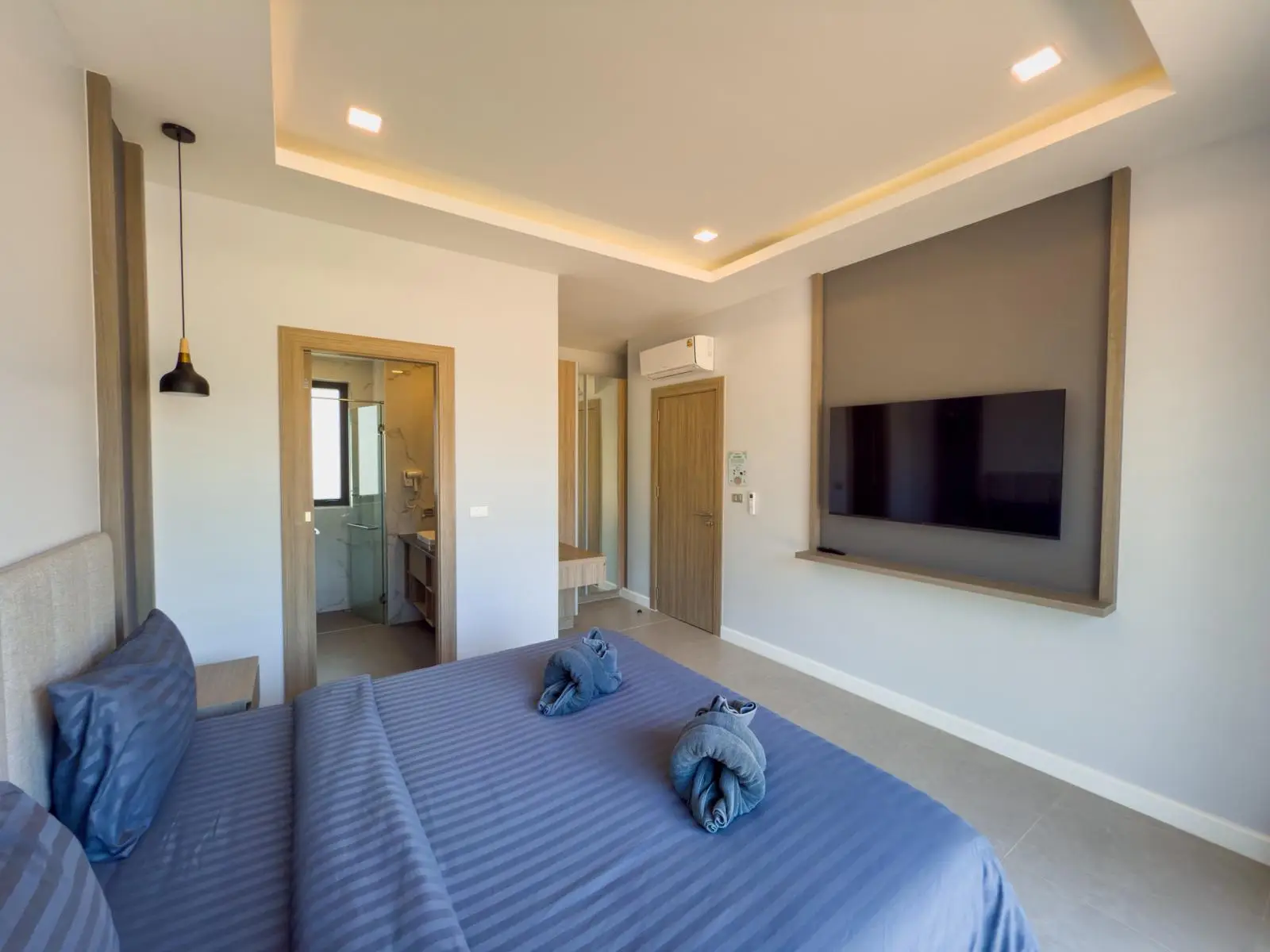 - King-size beds with built-in headboards and LG TVs in all rooms