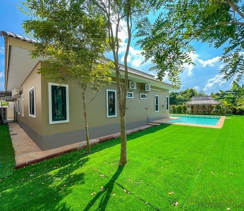 Experience elegant tropical living in this stunning 5-bedroom, 4-bathroom pool villa, set in a prestigious neighborhood just minutes from Bang Saray Beach. Designed for comfort, privacy, and luxury, this home offers spacious interiors, high-quality finishes, and a resort-style atmosphere—perfect for a dream home or investment.